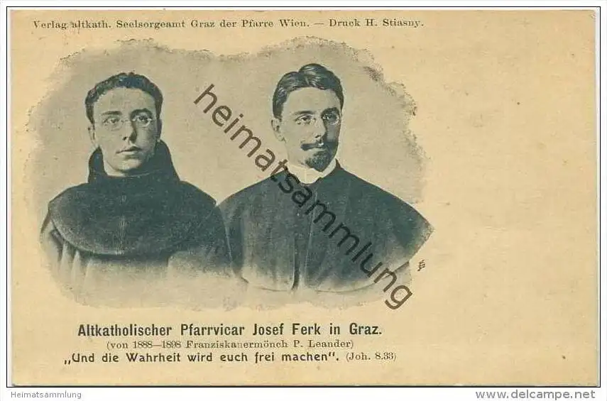 Altkatholischer Pfarrvicar Josef Ferk in Graz - Verlag altkatholisches Seelsorgeamt  Graz der Pfarre Wien ca. 1900