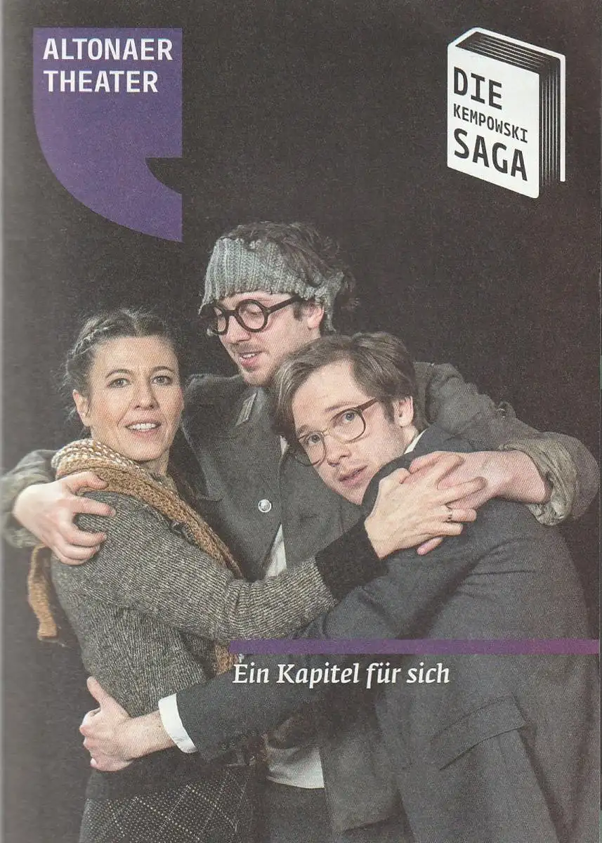 Nach den Romanen Ein Kapitel für sich und Uns geht´s ja noch Gold von Walter Kempowski. Bearbeitung für die Bühne von Axel Schneider. Regie: Axel Schneider. Bühne: Ulrike Engelbrecht. Kostüme: Sabrina von Allwörden. Mitwirkende: Johan J. Richter, Philip Spreen, Anne Schieber, Hans Schernthaner, Katrin Gerken, Tobias Dürr, Nadja Wünsche, Detlef Heydorn, Ute geske - Theaterprogramm, Opernprogramm, Ballettprogramm, Musicalprogramm, Konzertprogramm, Theatermemorabilia, Programmhefte Sammlung, deutsche Theatergeschichte.