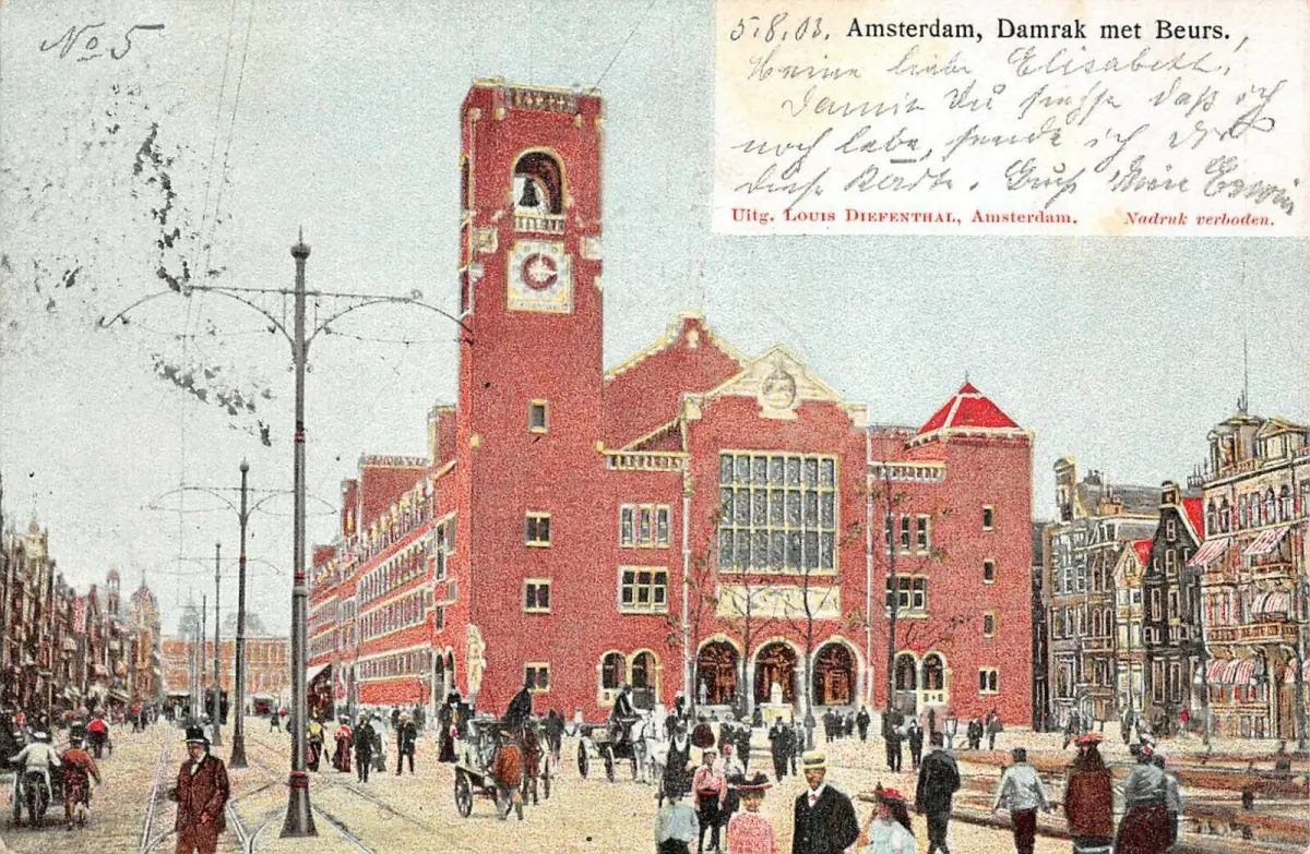 Amsterdam Damrak met Beurs Postkarte AK 1903