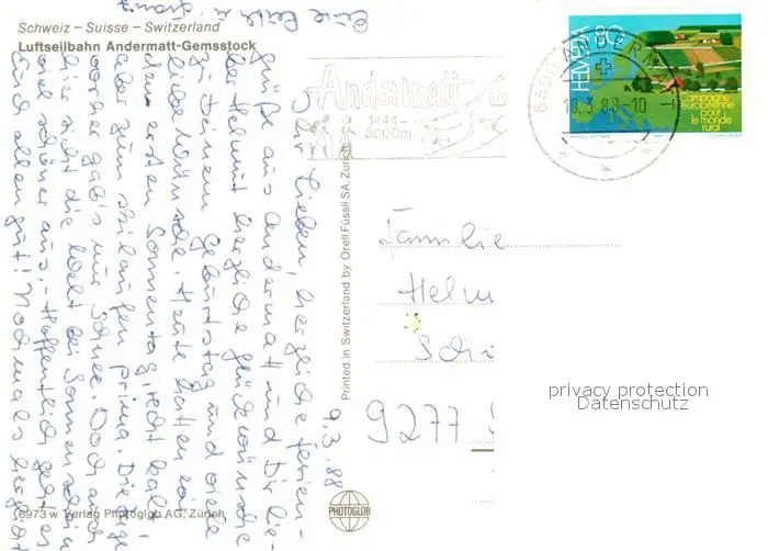 Andermatt Luftseilbahn Andermatt Gemsstock Wintersportplatz Alpen Andermatt postalisch gelaufen 1988 Erhaltung siehe scans [FriedD77] Frierer