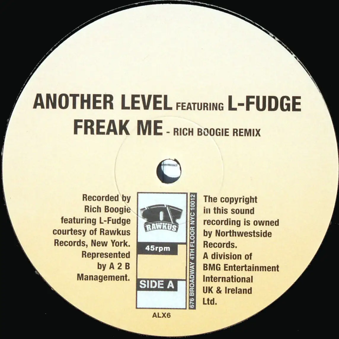 12" Maxi Another Level - Freak Me, feat. L-Fudge, neutrales Cover, Zustand Platte VG+ Hülle M-; Made in United Kingdom 1998 Rawkus ALX6, Tracks Rich Boogie RMX, Instr.. Vers
