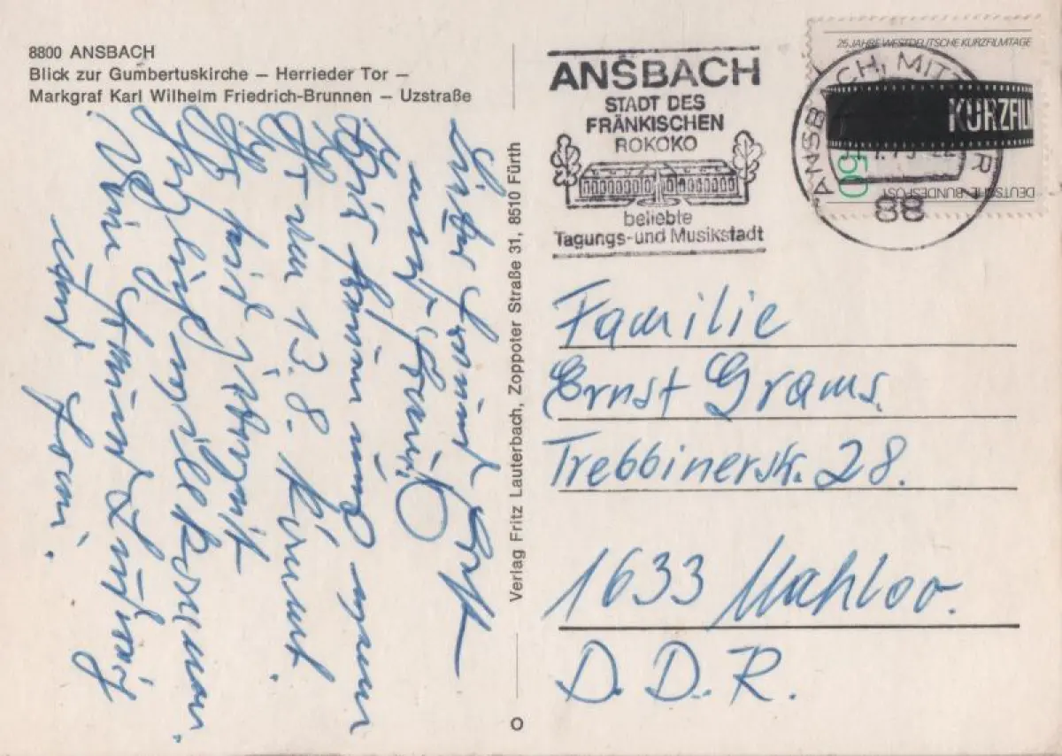 Postleitzahl:91522 (neu) / W 8800 (alt)