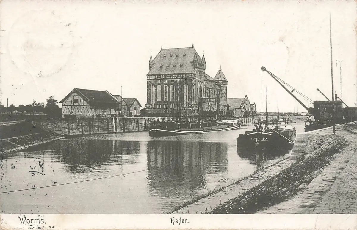 Ansicht Hafen in Worms Rheinland-Pfalz Postkarte AK