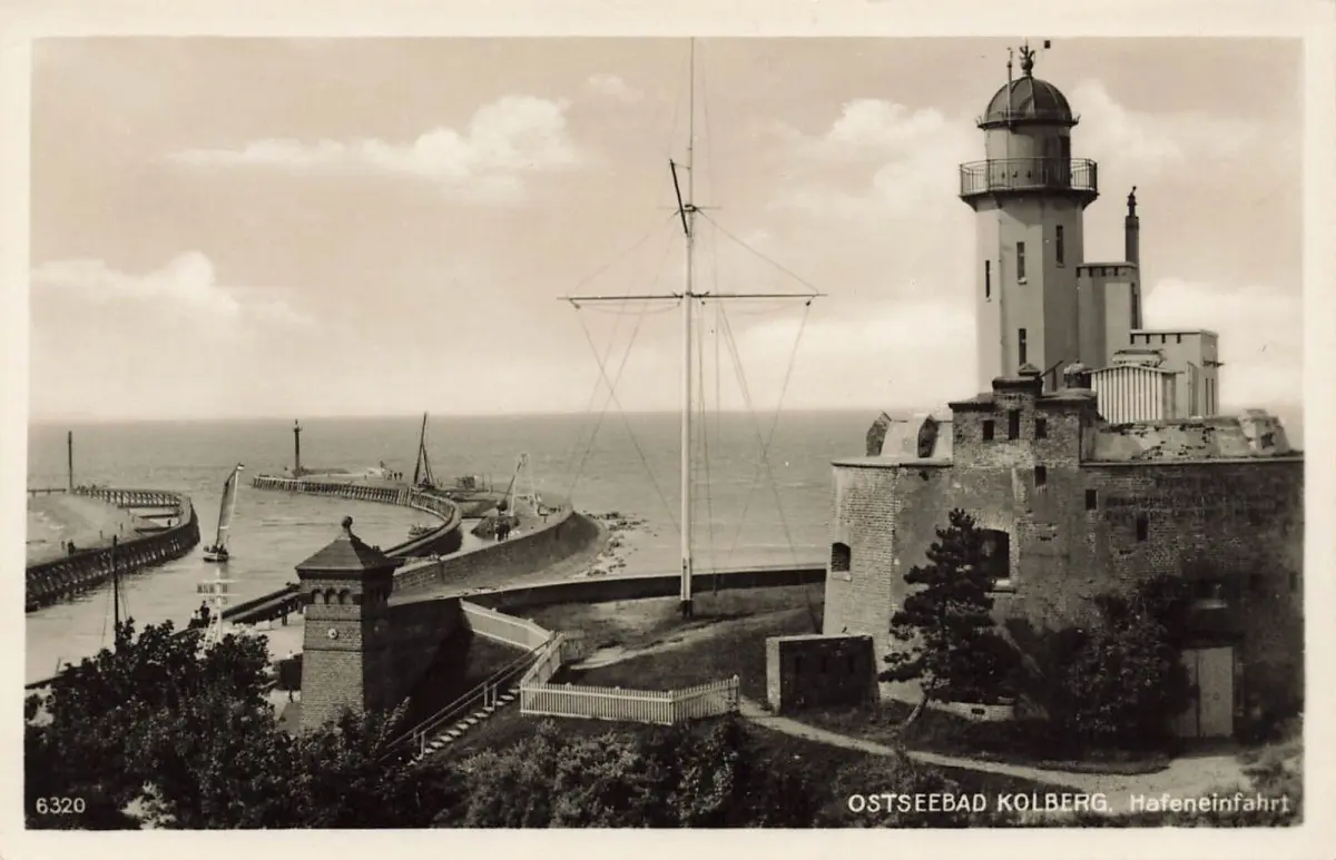 Ansicht Hafeneinfahrt Ostseebad Kolberg Pommern Postkarte AK