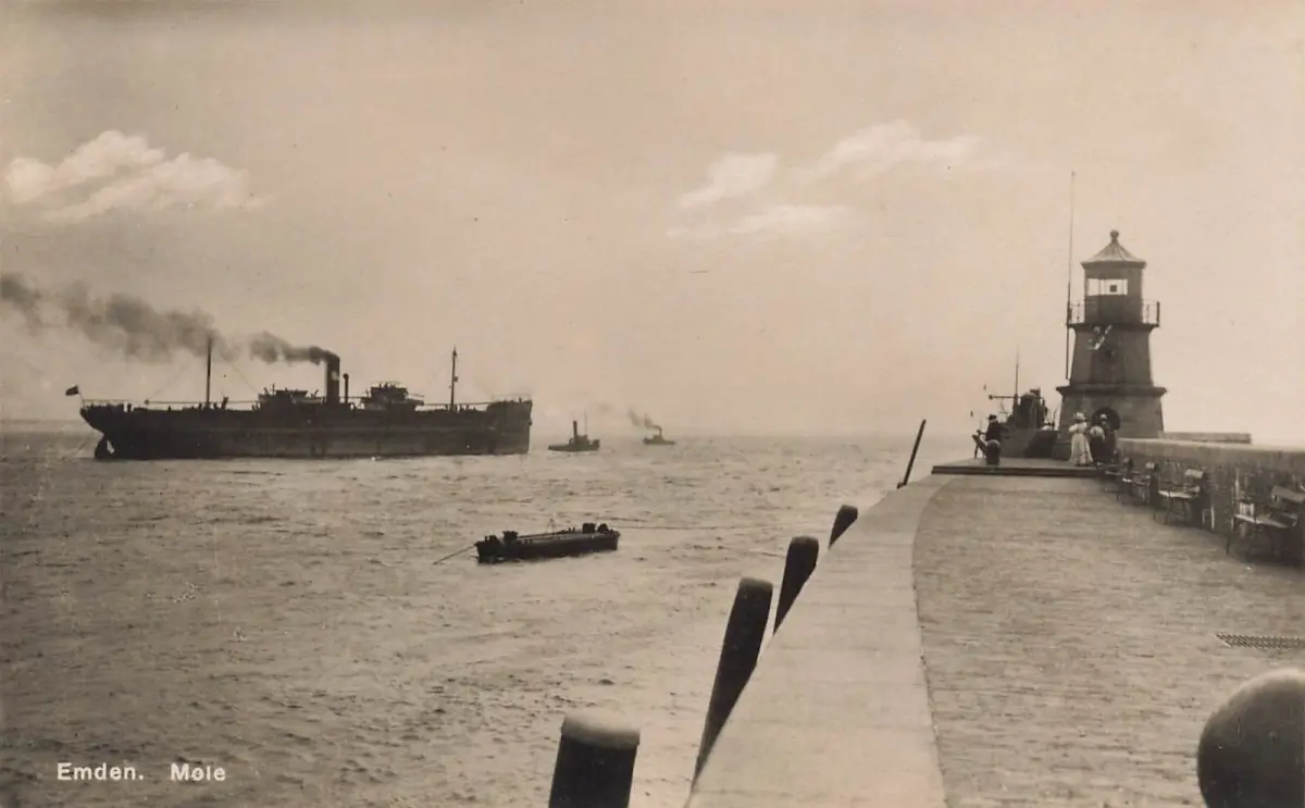 Ansicht Mole bei Emden Niedersachsen Postkarte AK