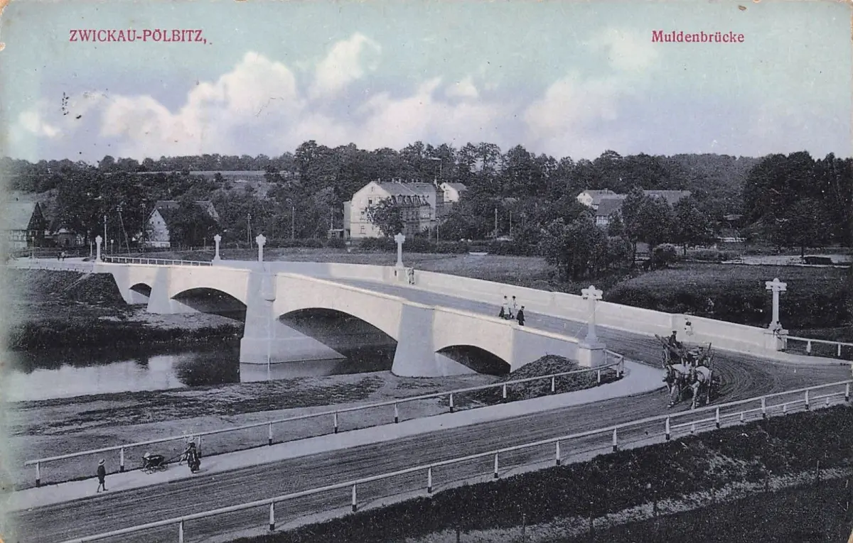 Ansicht Muldenbrücke in Zwickau-Pölbitz Sachsen Postkarte AK 1915
