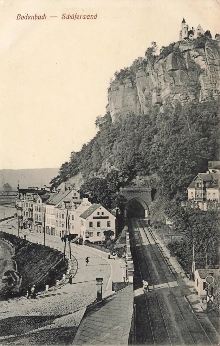 Ansicht Schäferwand Eisenbahntunnel in Bodenbach Böhmen Postkarte AK