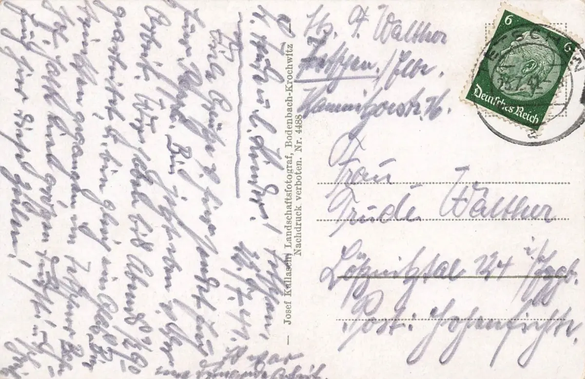 Rückseite: gelaufen 1941