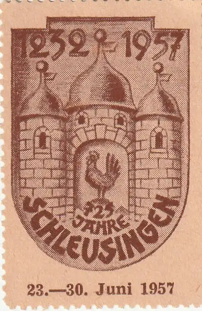Titel: 0-6056 SCHLEUSINGEN, Vignette, 725 Jahr Feier 1957