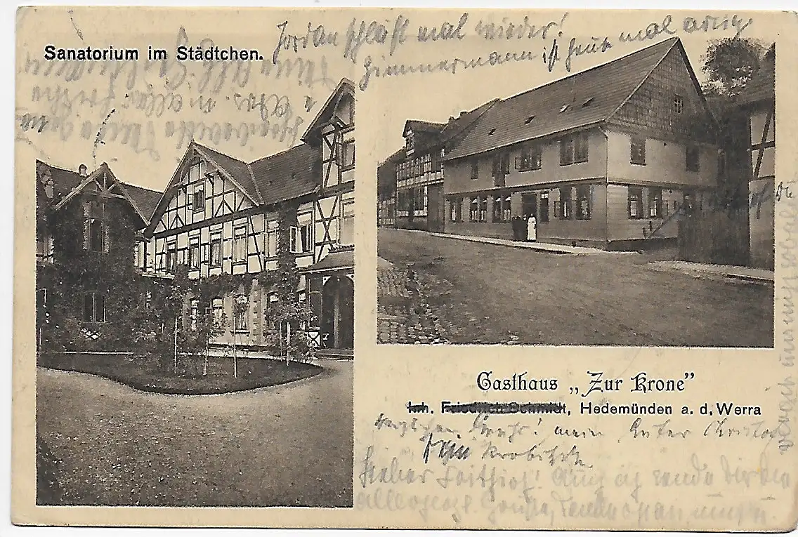 Ansichtskarte 1915: Hedemünden a.d.Werra, Gasthaus Krone, Feldpost