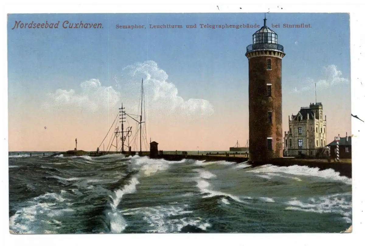 [Ansichtskarte] 2190 CUXHAVEN, Semaphor, Leuchtturm, Telegraphengebäude, 1. Weltkrieg, Feldpost Kaiserliche Marine, Seewehr Abteilung.