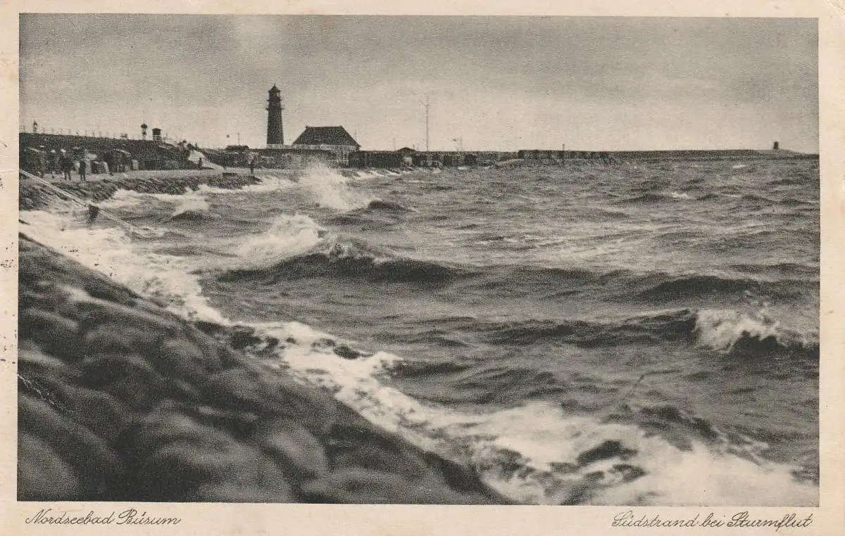 [Ansichtskarte] 2242 BÜSUM, Südstrand bei Sturmflut, 1932.