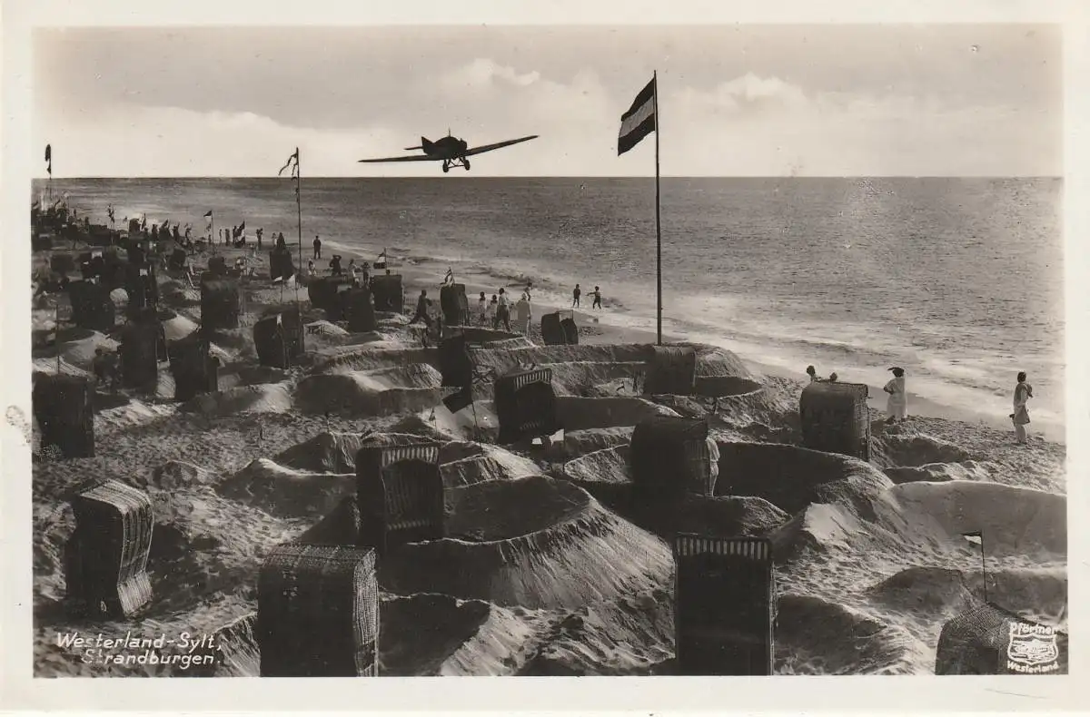 [Ansichtskarte] 2280 WESTERLAND / SYLT, Junkers F 13 über dem Strand, Verlag Pförtner.