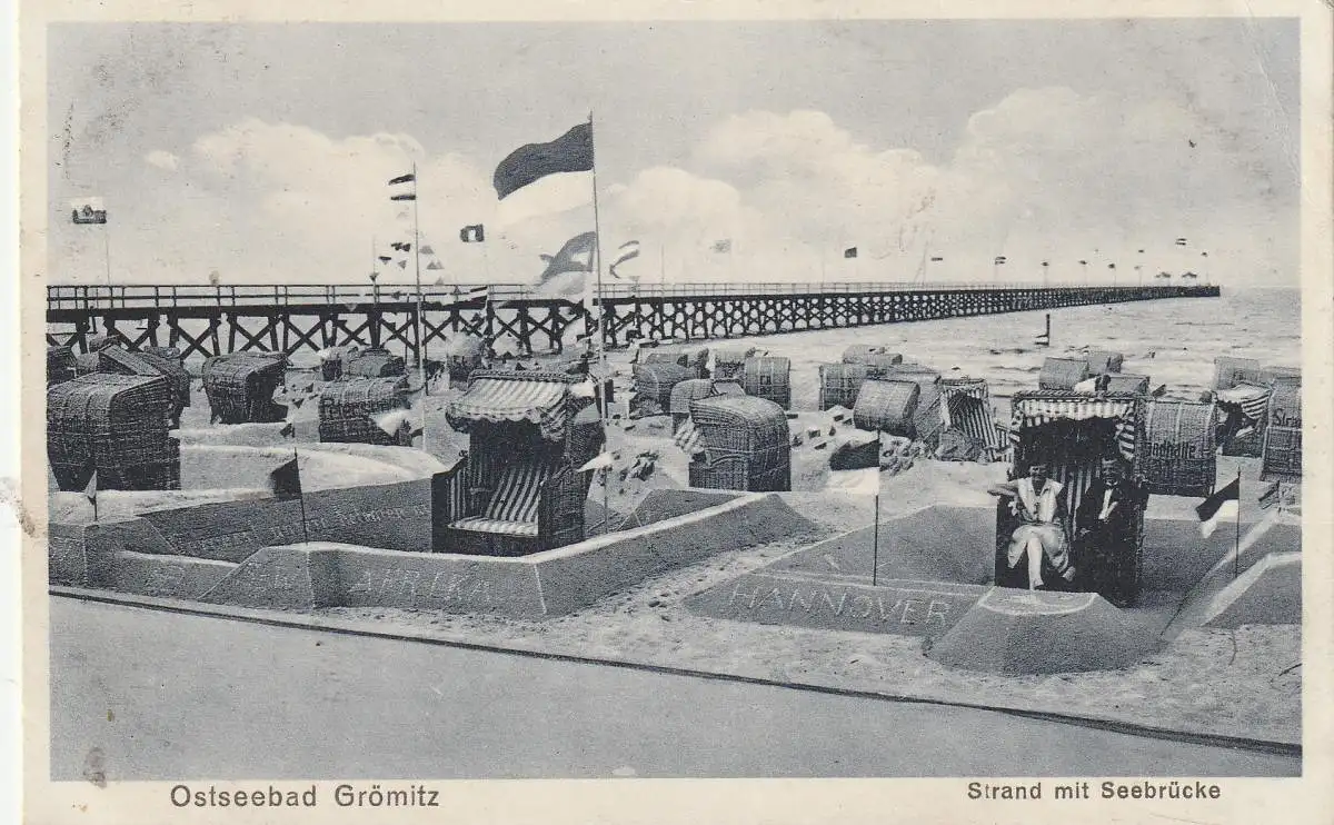 [Ansichtskarte] 2433 GRÖMITZ, Seebrücke, tolle Strandburgen, 1929.