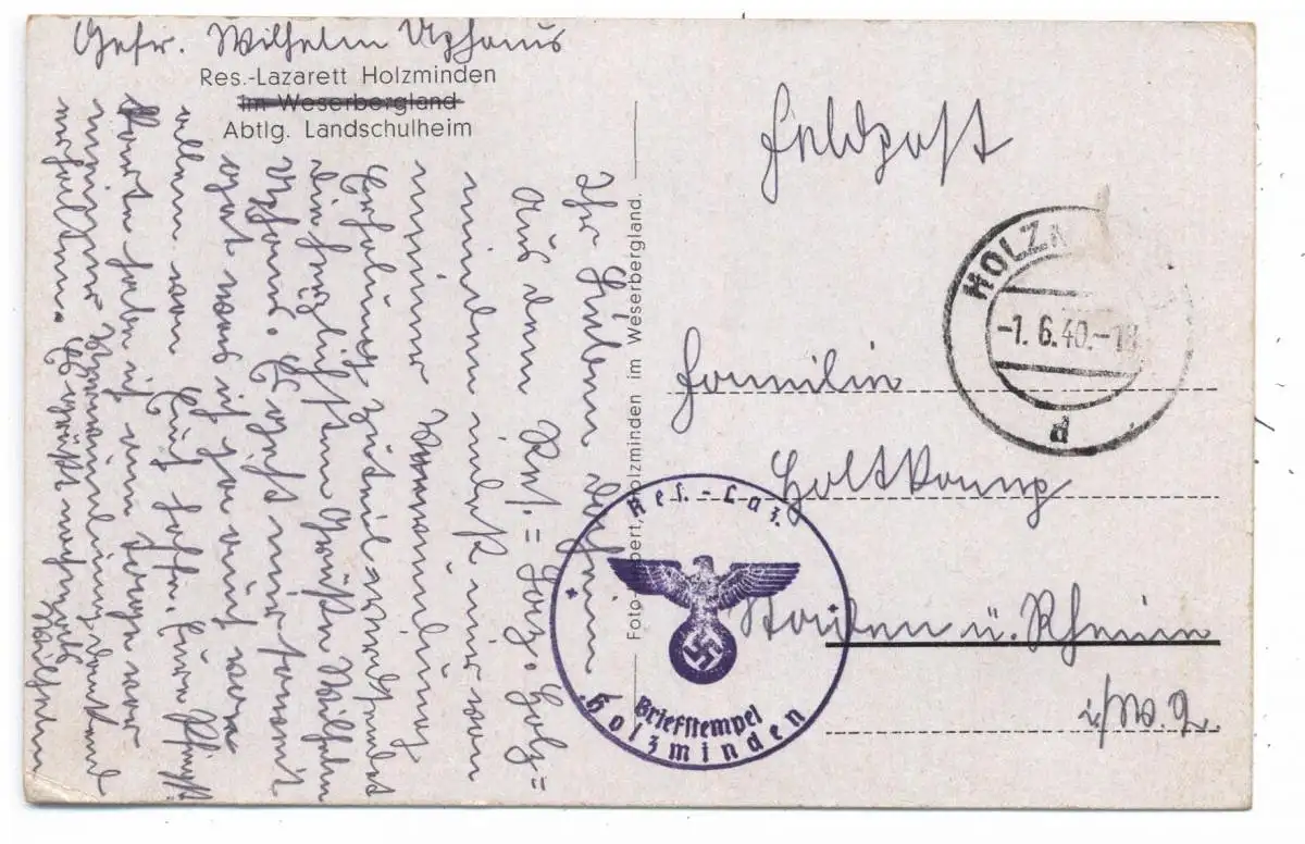 [Ansichtskarte] 3450 HOLZMINDEN, Reserve Lazarett, 1940, Feldpost, Lazarett Stempel.