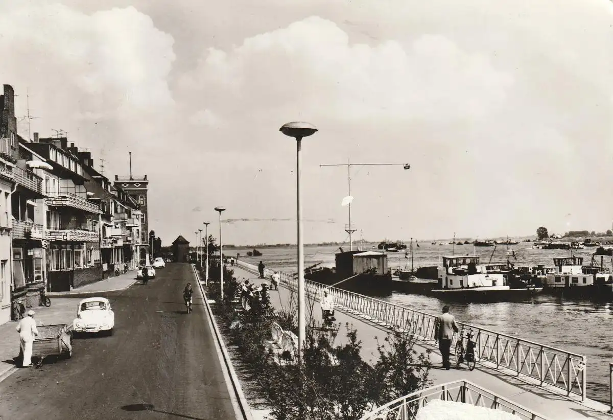 [Ansichtskarte] 4240 EMMERICH, Rheinpromenade, Frachtschiffe, VW - Käfer.