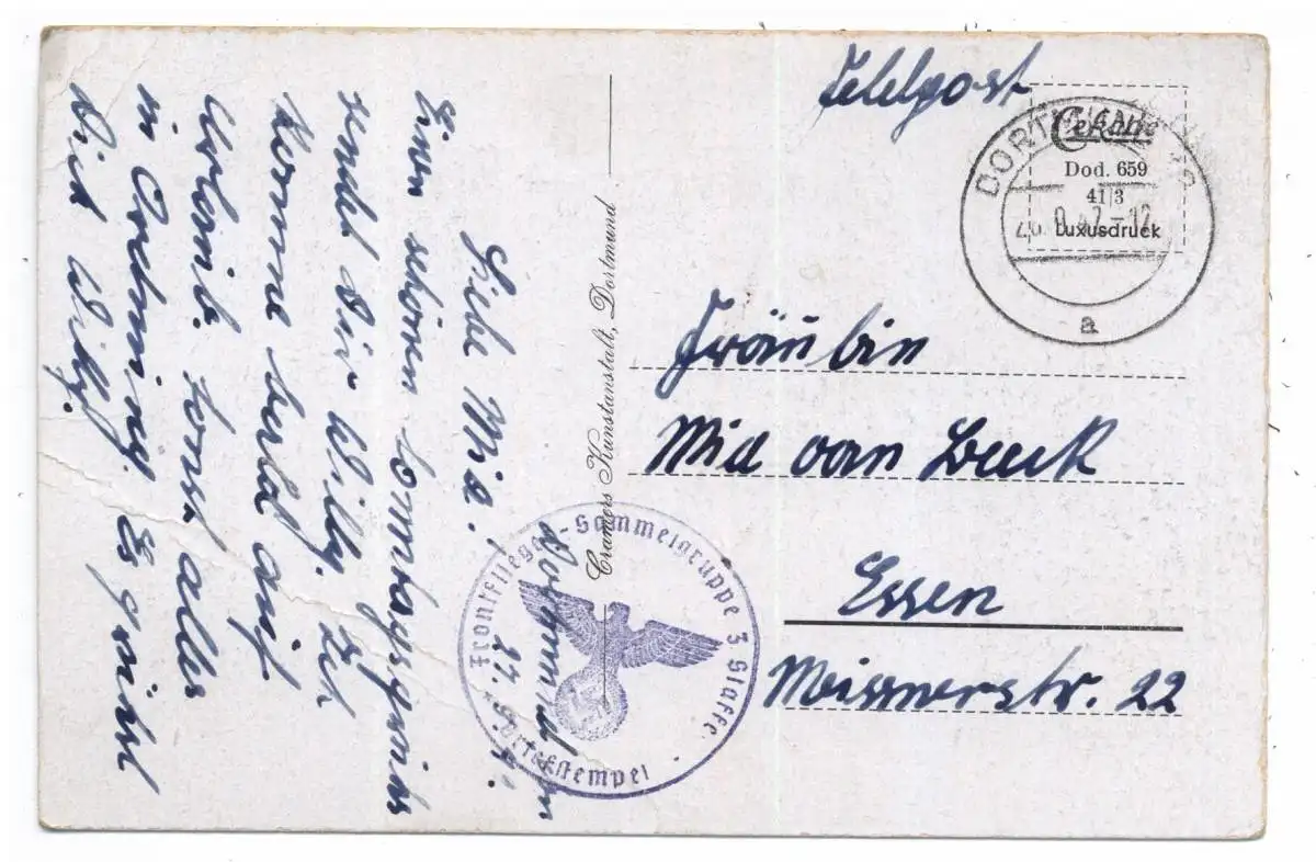 Titel: 4600 DORTMUND, Buschmühle, Feldpost Frontflieger Sammelgruppe 3. Staffel, 1942, Knick
