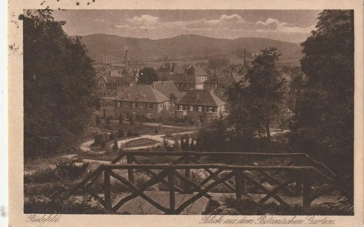 [Ansichtskarte] 4800 BIELEFELD, Blick aus dem Botanischen Garten, 1913.