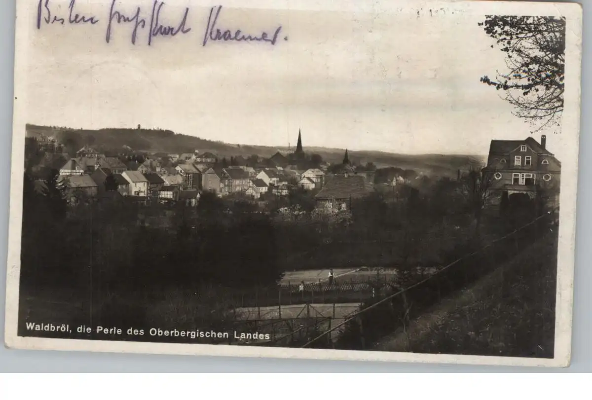 Titel: 5220 WALDBRÖL, Gesamtansicht 1931, geschrieben an die Baronin Gerti Geyr von Schweppenburg, Interessanter Text: "Hier ist alles nationalsozialistisch, Heil Hitler"