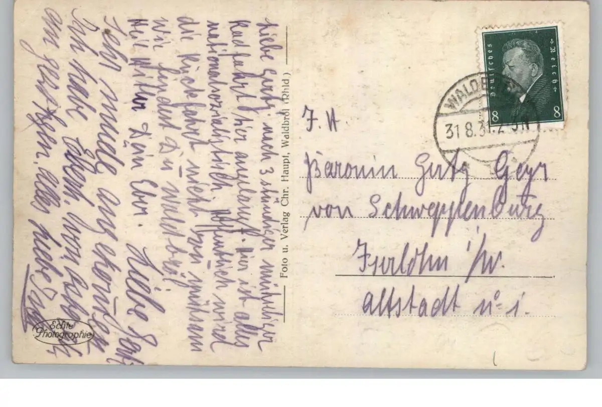 [Ansichtskarte] 5220 WALDBRÖL, Gesamtansicht 1931, geschrieben an die Baronin Gerti Geyr von Schweppenburg, Interessanter Text: "Hier ist alles nationalsozialistisch, Heil Hitler".