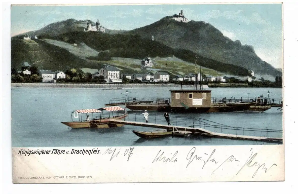 [Ansichtskarte] 5300 BONN - BAD GODESBERG - MEHLEM, Königswinterer Fähre und Ausflugsschiff am Anleger, 1907.