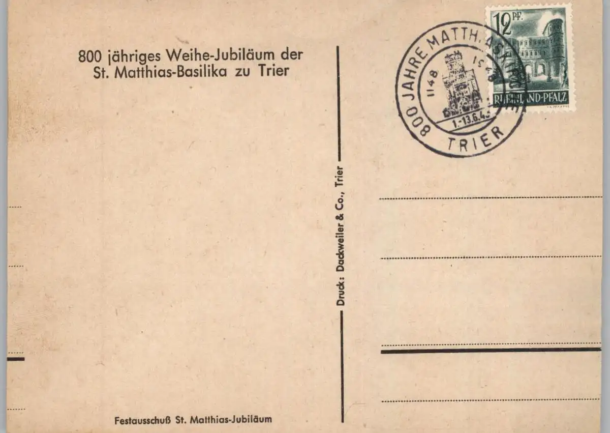 [Ansichtskarte] 5500 TRIER, 800 jähriges Weihe - Jubiläum der St. Matthias Basilika 1948.