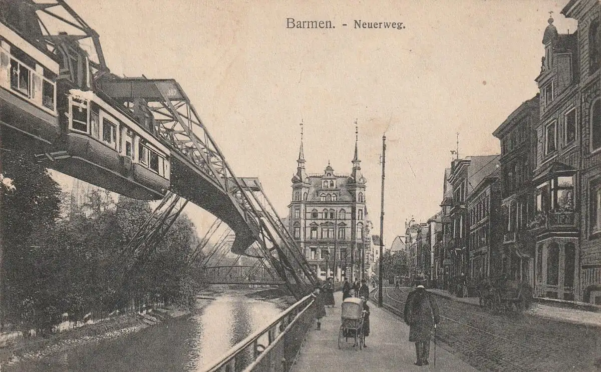 Titel: 5600 WUPPERTAL, Neuerweg, belebte Szene, Kinderwagen, Schwebebahn