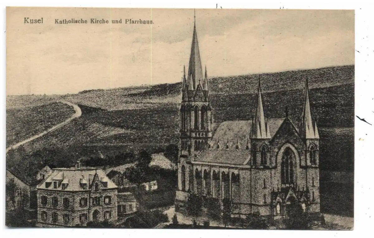 [Ansichtskarte] 6798 KUSEL, Katholische Kirche und Pfarrhaus, Verlag Wolf.