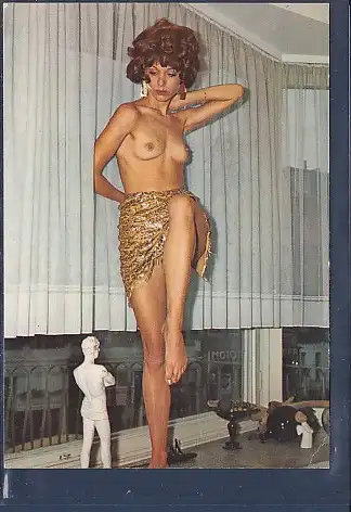 Titel: AK Erotik Frau barbusig mit Rock stehend