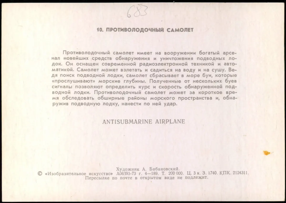 Name: ANTISUBMARINE AIRPLANE Flugzeug Airplane Avion Rußland