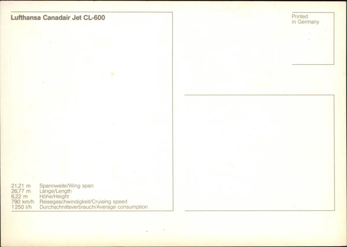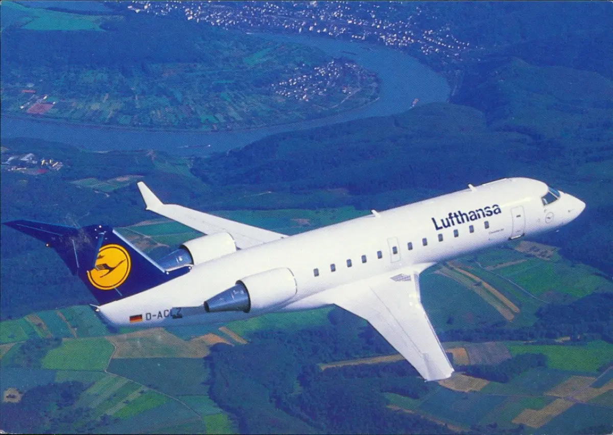 Ansichtskarte Airplane Flugzeug Airline Lufthansa Canadair Jet CL-600 1990