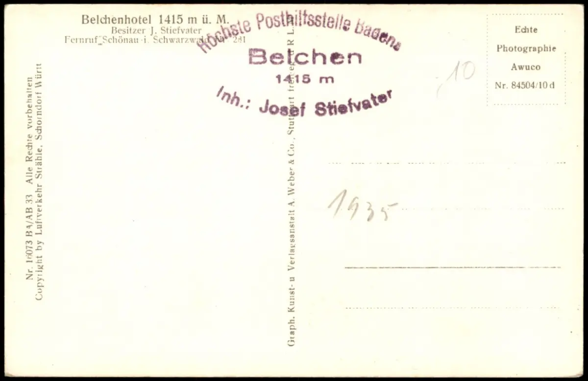 Ansichtskarte Aitern Hotel-Gasthof Belchen Multen Luftbild 1932