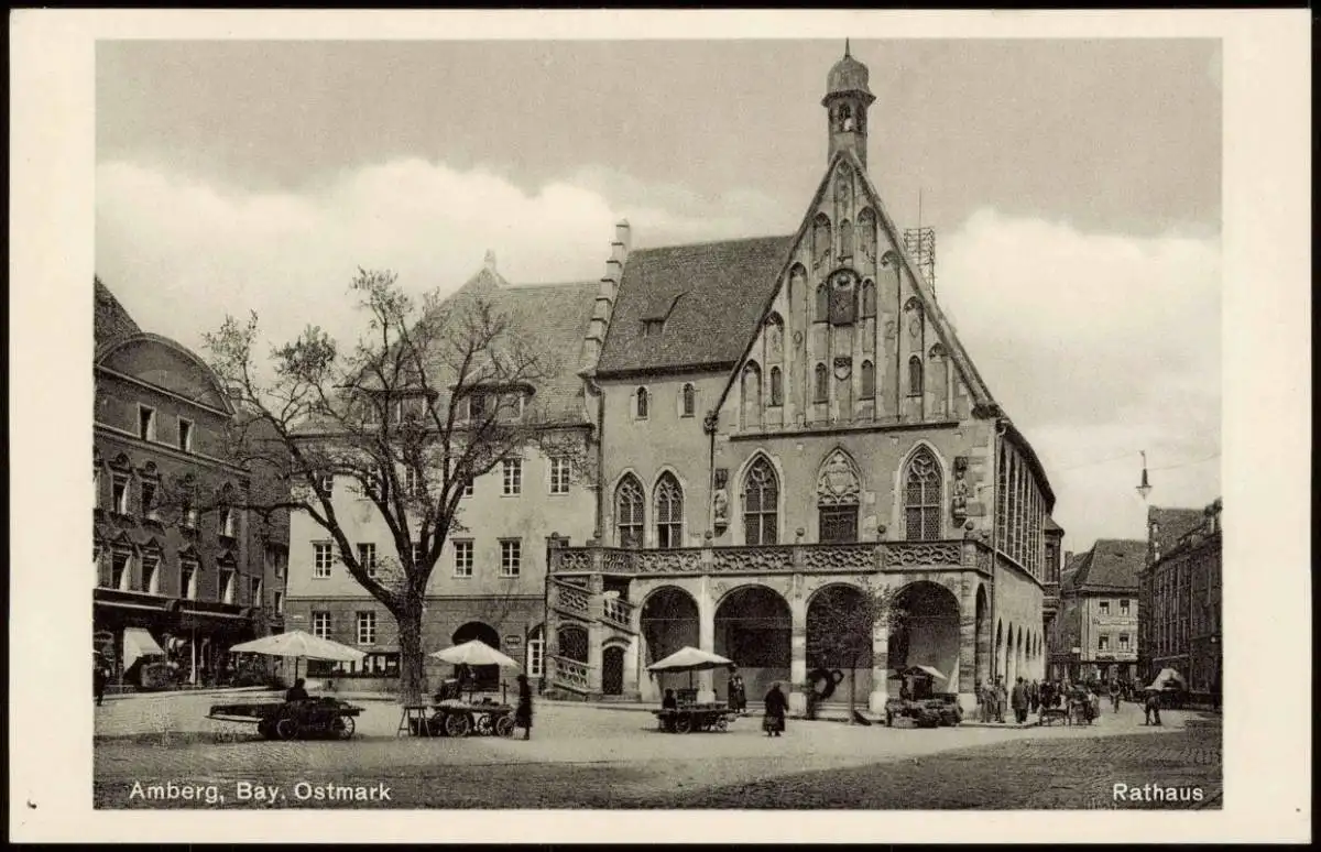 Ansichtskarte Amberg Rathaus, Marktstände 1934