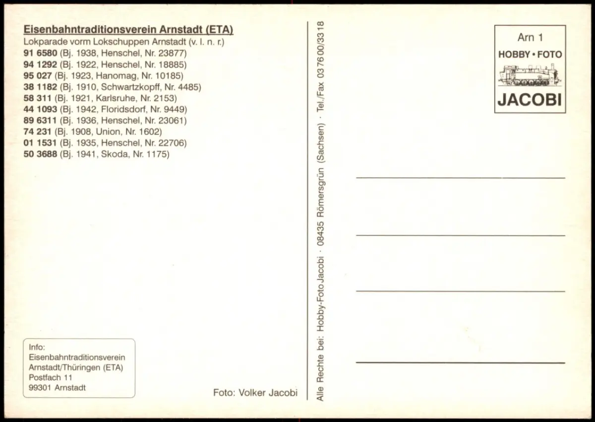 Infos: Eisenbahntraditionsverein Arnstadt (ETA)Lokparade vorm Lokschuppen Arnstadt (v. I. n. r.)