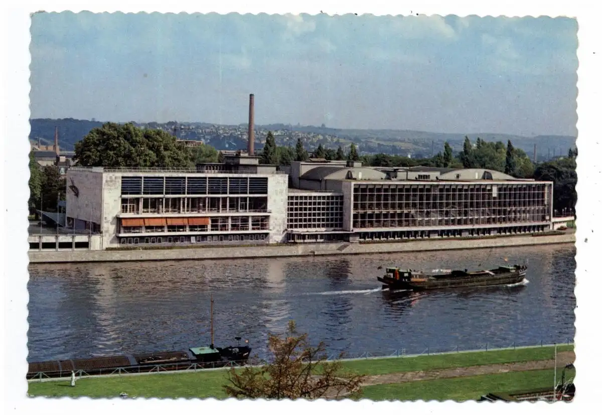 [Ansichtskarte] B 4000 LIEGE / LÜTTICH, Kongresspalast an der Maas, Frachtschiffe.
