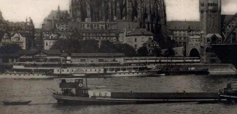 [Ansichtskarte] BINNENSCHIFFE - RHEIN, Köln-Düsseldorfer "ERNST - LUDWIG" am Kölner Anleger, Frachtschiffe, 1930.