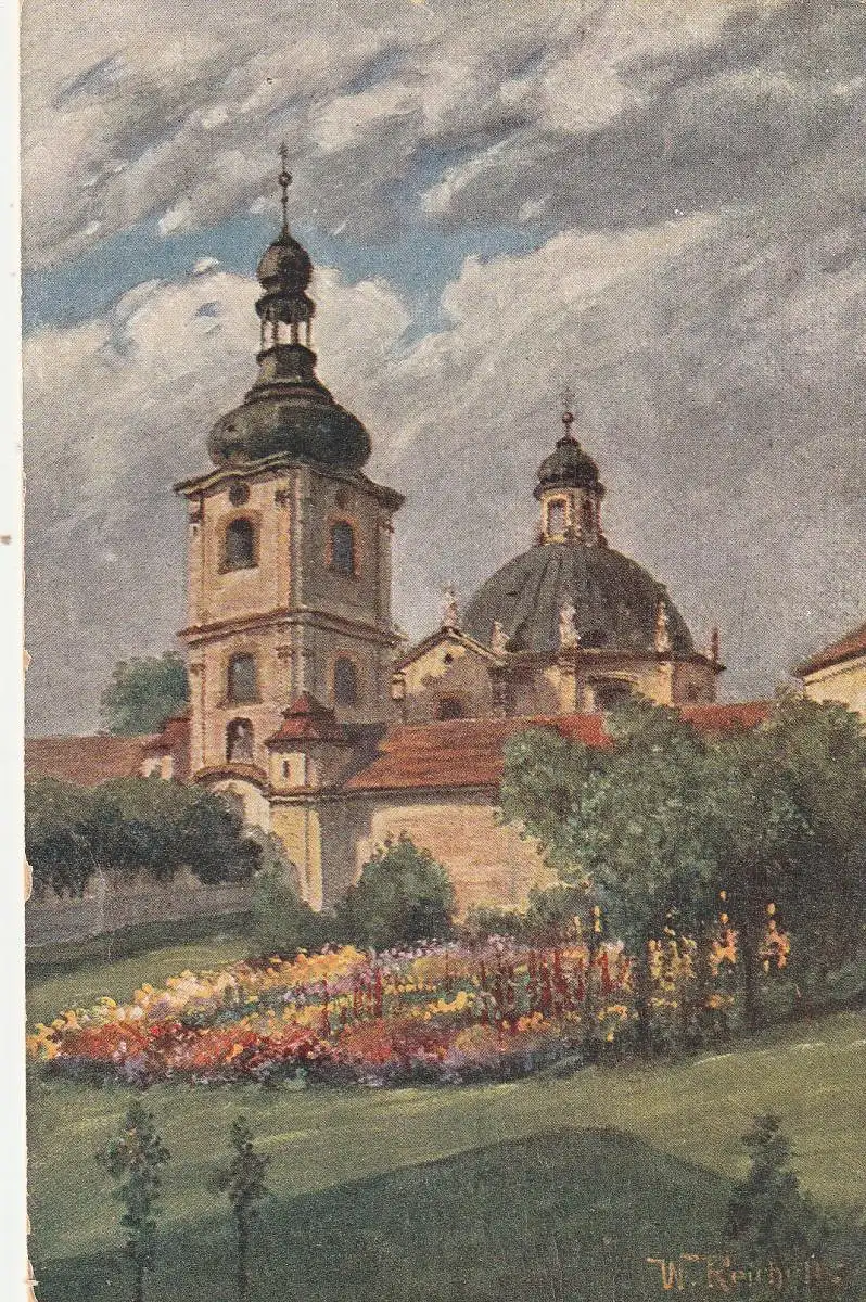 [Ansichtskarte] BÖHMEN & MÄHREN - BÖHMISCH KAMNITZ / CESKA KAMENICE, Kirche, Künstler-Karte W.Reichelt, Bund der Deutschen in Böhmen.