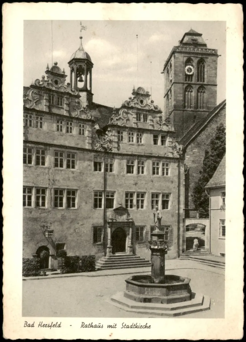 Ansichtskarte Bad Hersfeld Rathaus mit Stadtkirche 1955