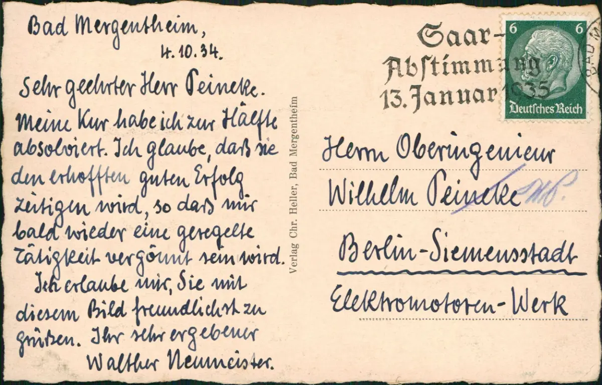 Ansichtskarte Bad Mergentheim Totalansicht 1934 Stempel Saar-Abstimmung 1935