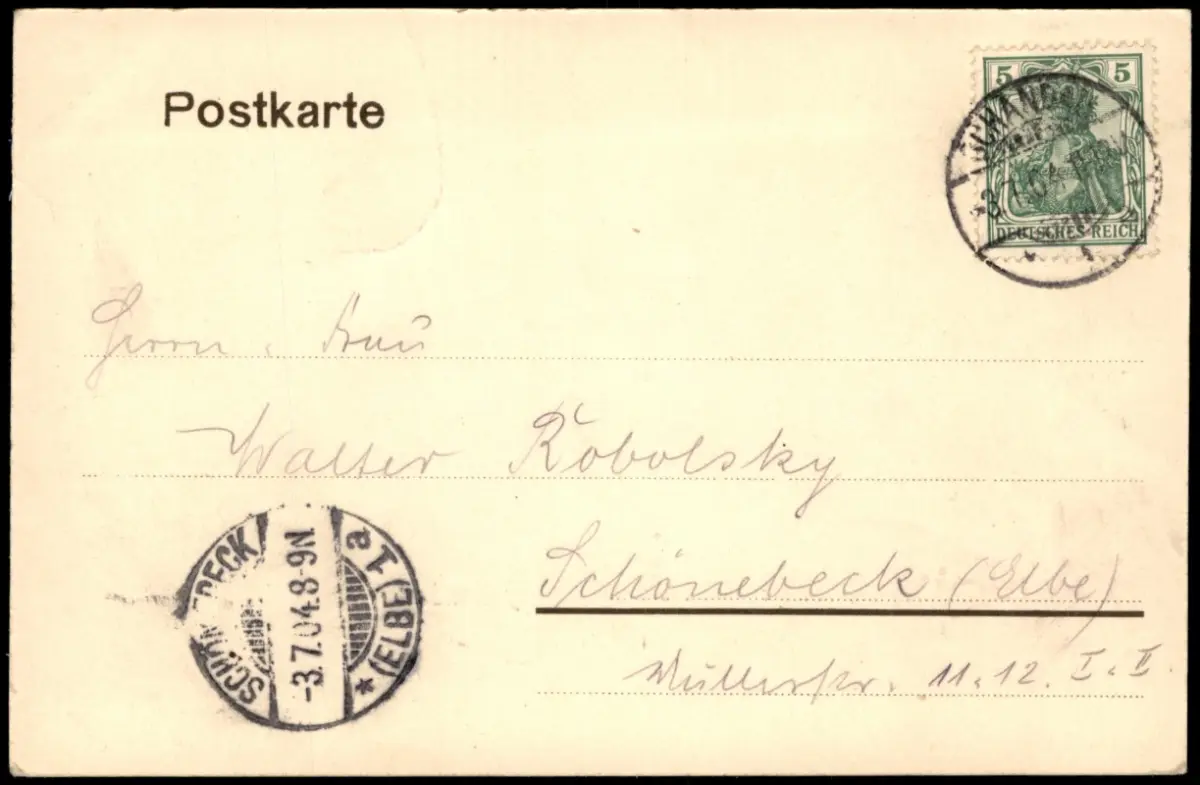 gelaufen nach SCHÖNEBECK (Ankunftsstempel)