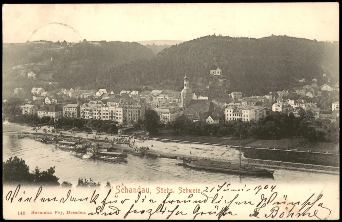 Ansichtskarte Bad Schandau Panorama-Ansicht Elbe Schiffe 1904