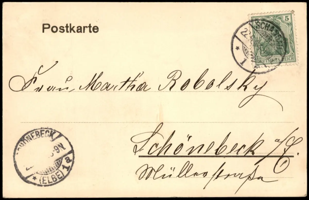 gelaufen nach SCHÖNEBECK (Ankunftsstempel)