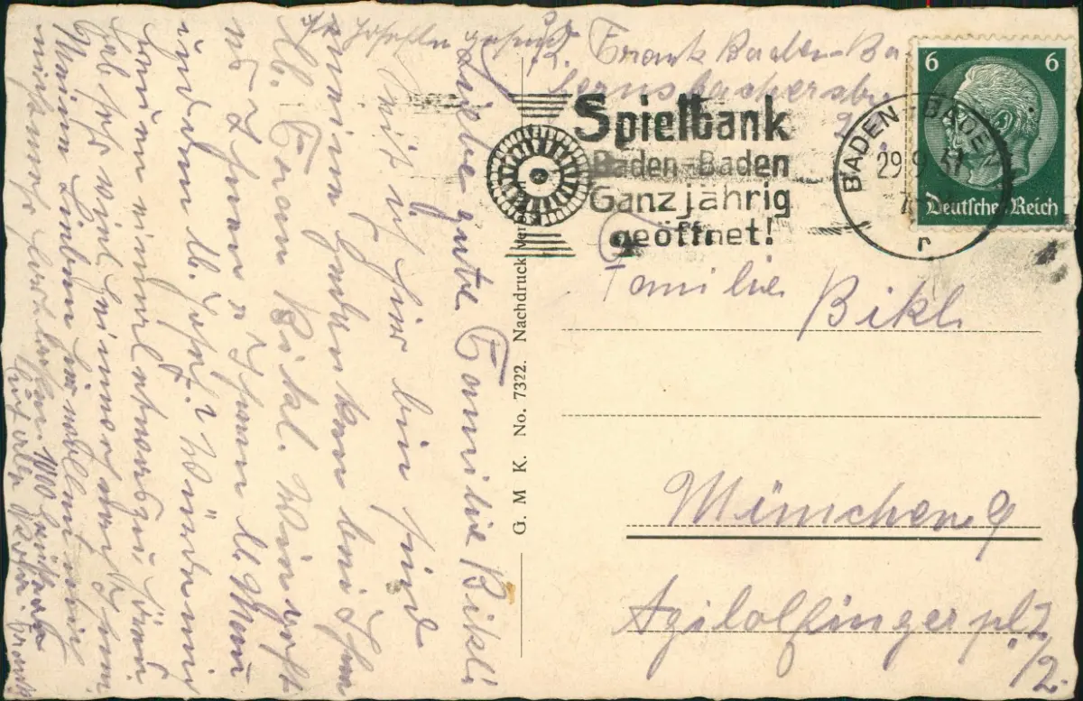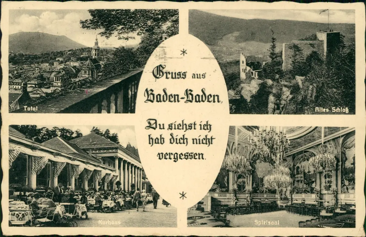 Ansichtskarte Baden-Baden 4 Bild Stadt Kurhaus Spielsaal 1937