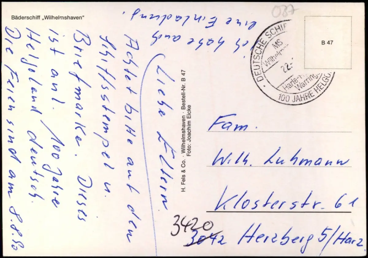Ansichtskarte Bäderschiff "Wilhelmshaven" 1991