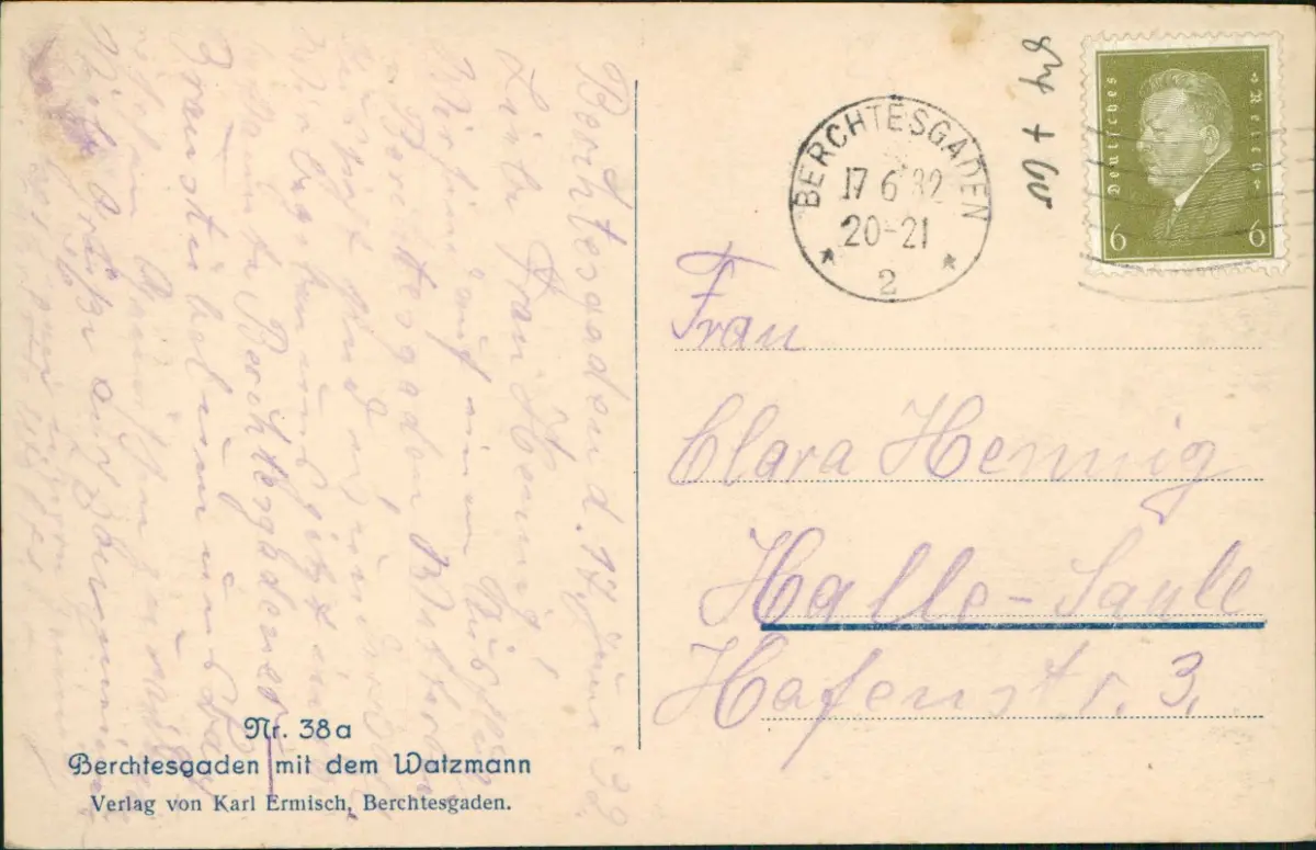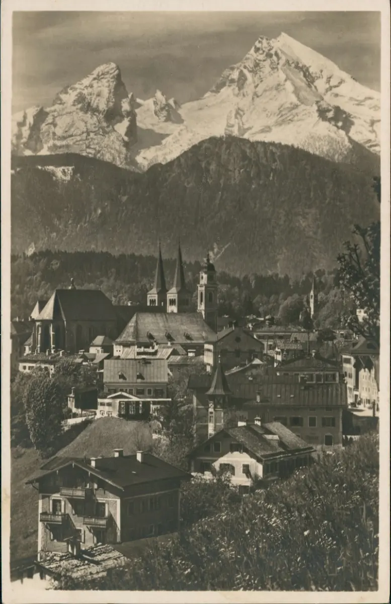 Ansichtskarte Berchtesgaden Stadtpartie und Watzmann 1932