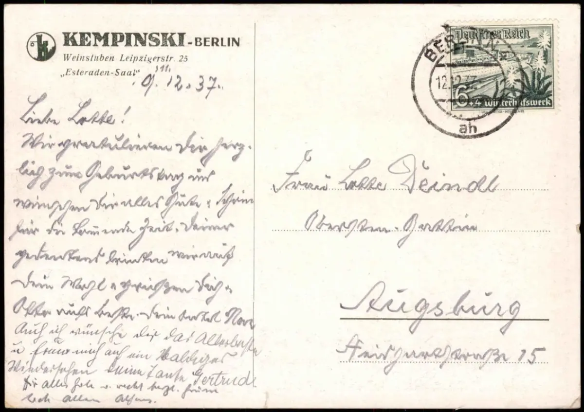 Ansichtskarte Berlin Weinstuben Kempinski Esteraden Saal 1937