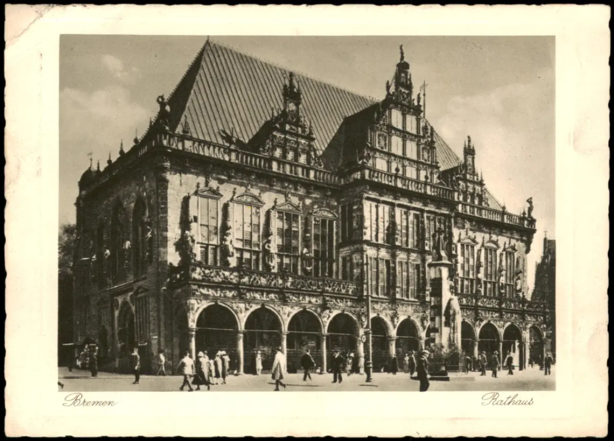 Ansichtskarte Bremen Rathaus belebter Vorplatz 1932