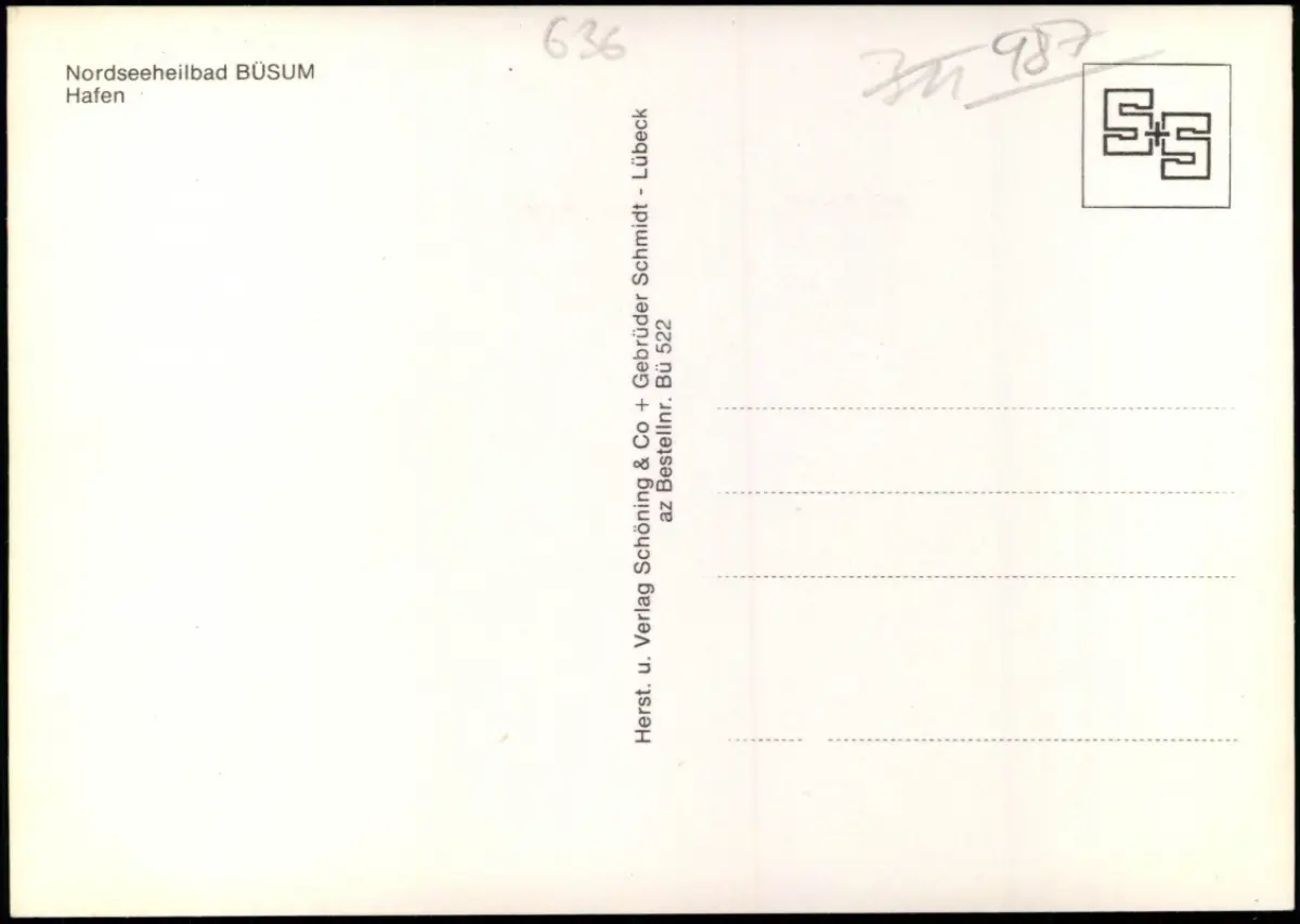 Ansichtskarte Büsum Hafen, Motorboot Segelschiff 1985