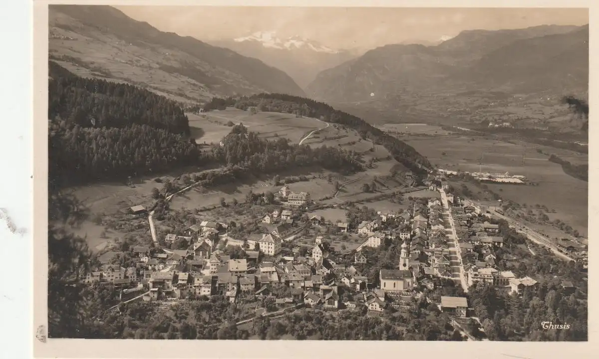 Titel: CH 7430 THUSIS GR, Blick auf den Ort