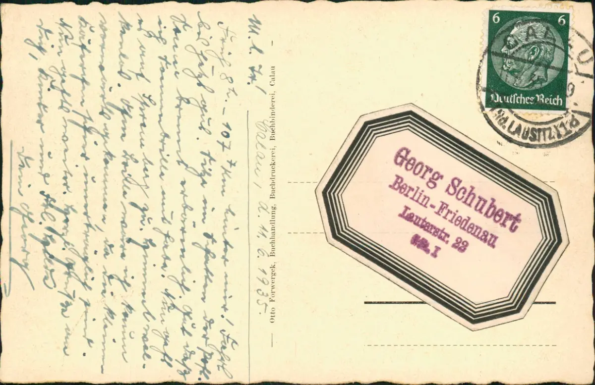 Verlag: Otto Forwergck, Calau, Buchbinderei, Buchhandlung, Akzidenzdruckerei